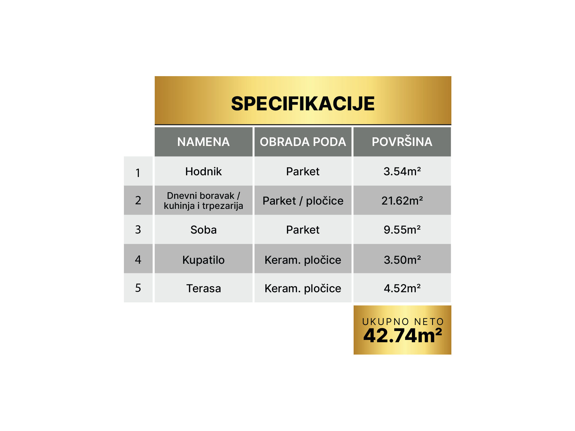 Dvosoban 42.74m²