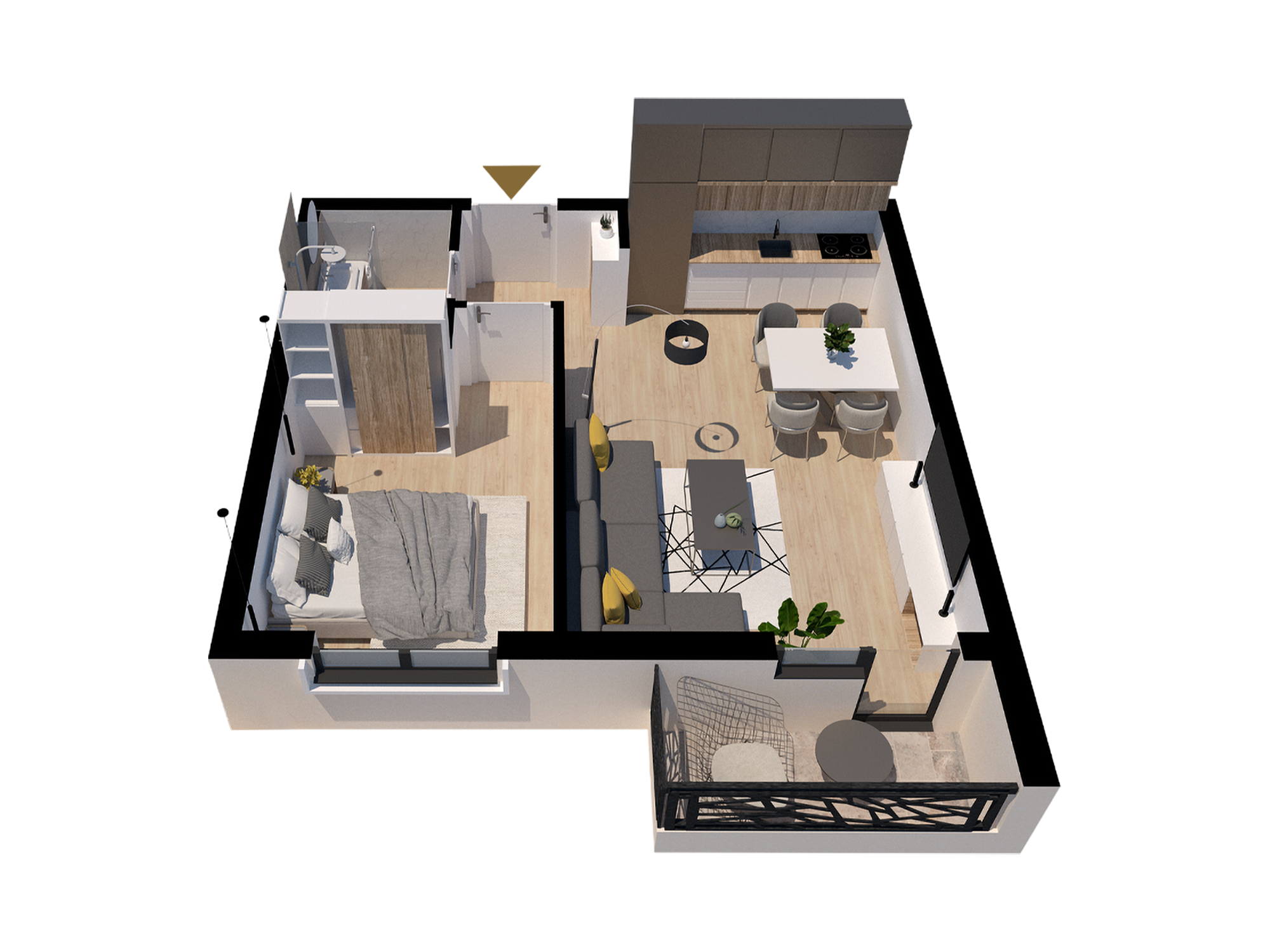 Ovaj stan je pažljivo projektovan kako bi pružio maksimalnu funkcionalnost i komfor. Svaki detalj enterijera osmišljen je sa ciljem optimalne iskoristivosti prostora, dok velike prozorske površine omogućavaju obilje prirodne svetlosti.